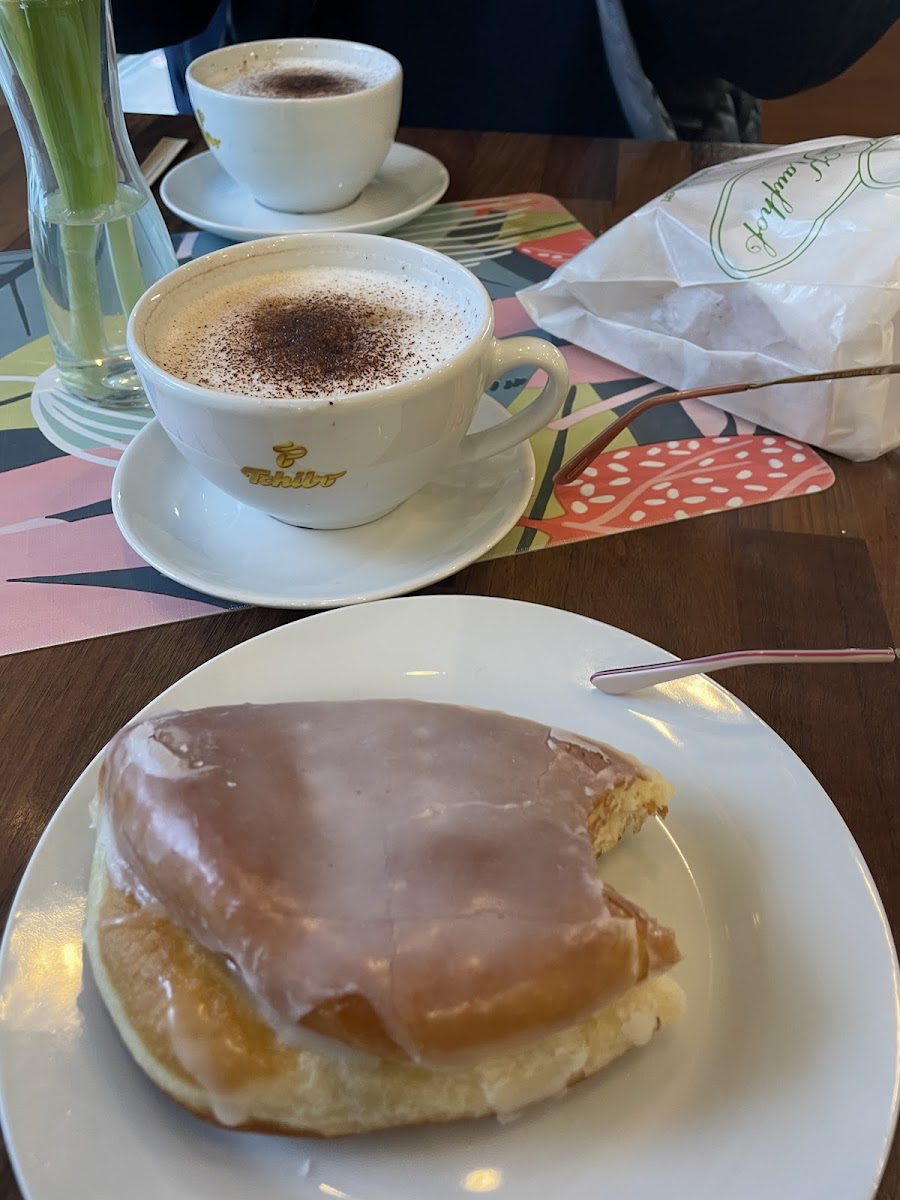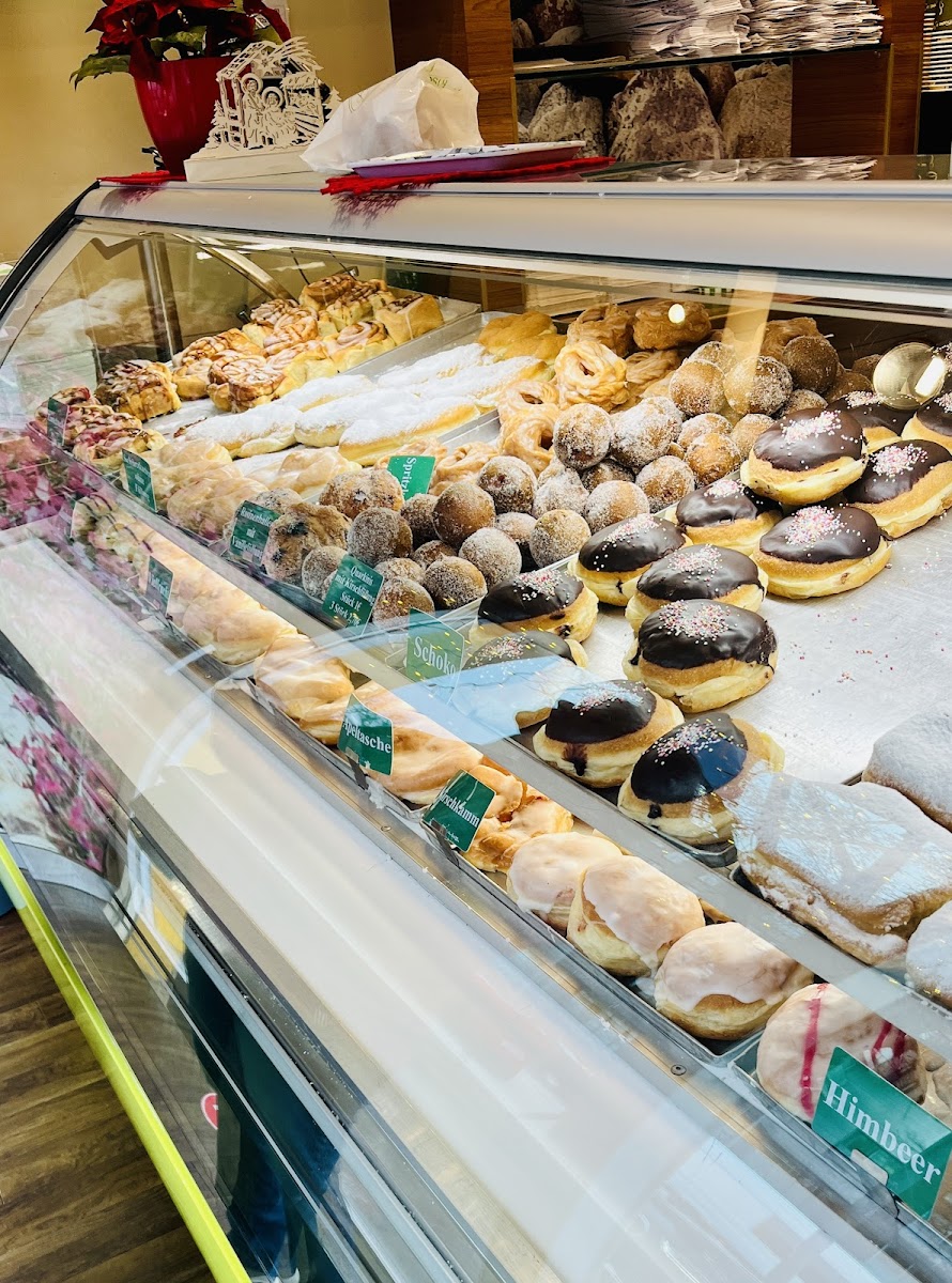 The vibe here is unpretentious and simple—furniture and decor don’t aim for flair but instead keep things functional. This makes it less about lingering for hours and more about comfort and familiarity. It’s busy enough to feel like a neighborhood hub, with a steady rotation of visitors, including families picking up cakes, office workers grabbing a quick bite, and regulars coming for the distinct Berliner variations and popular spritz pastries.